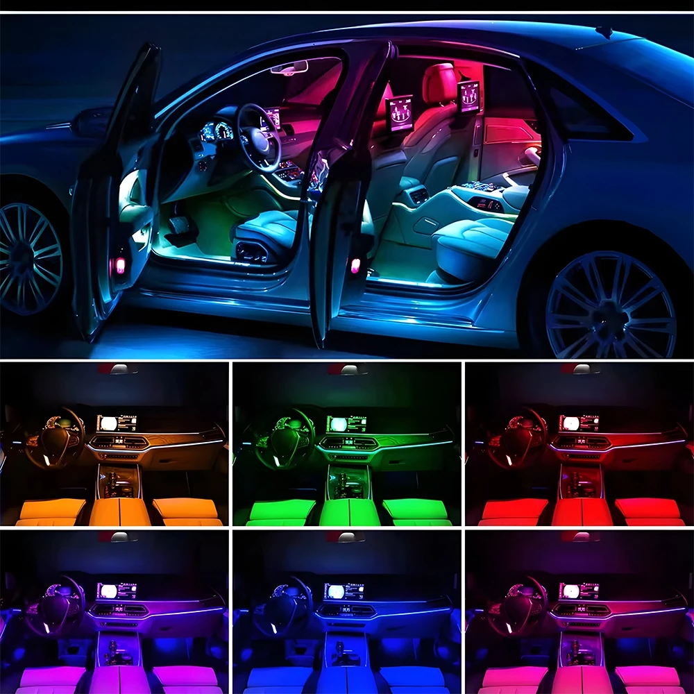شرائط إضاءة LED داخلية ملونة للسيارة قابلة للتغيير حسب الرغبة.