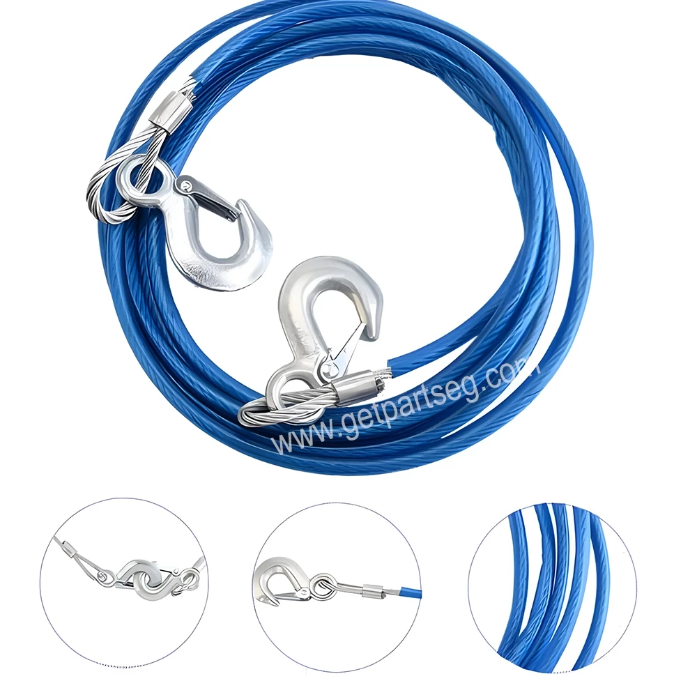 واير سحب سيارة ستيل مغلف بطبقة بلاستيكية مع خطافين معدنيين